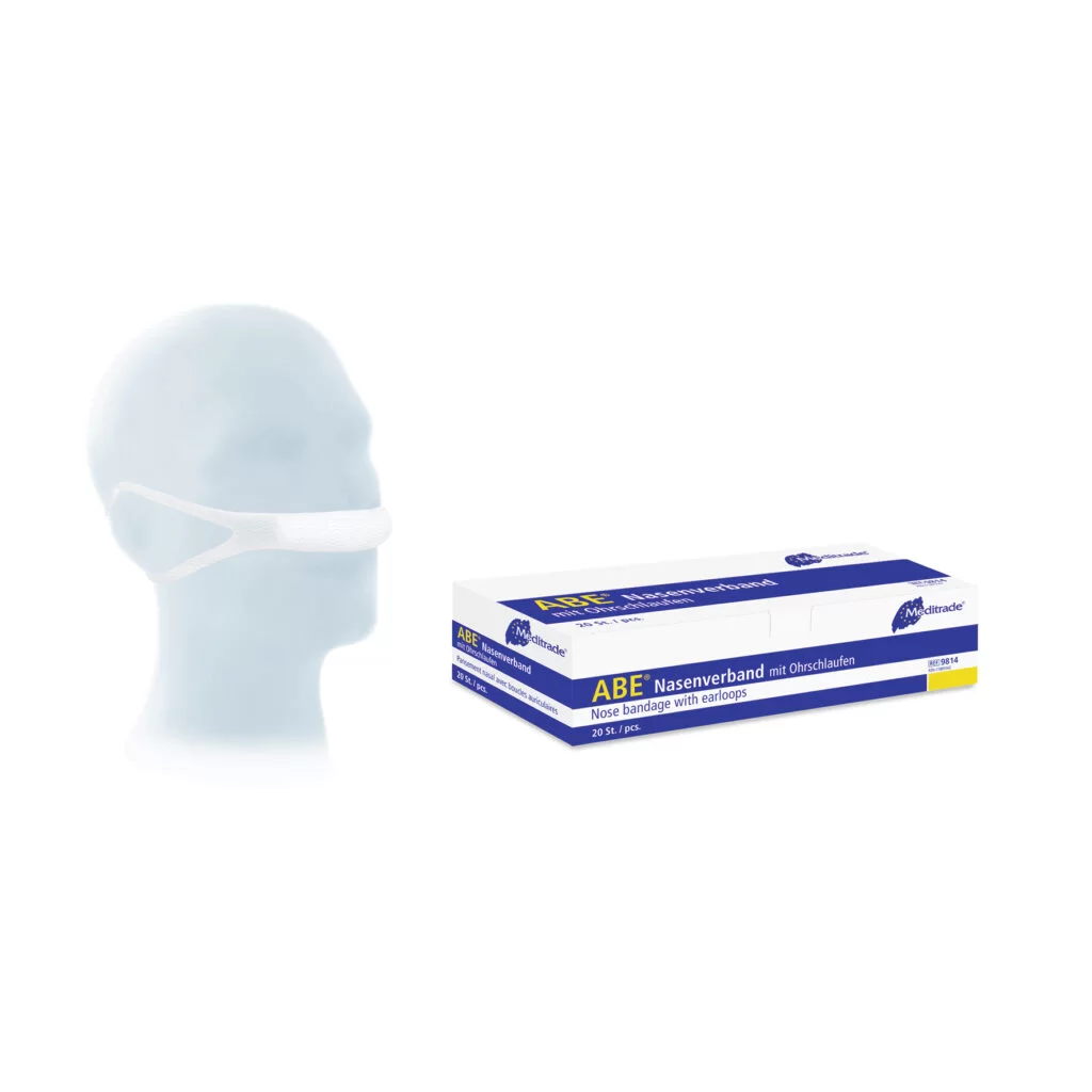 Bi-elastischer Nasenverband mit elastischen Ohrschlaufen oder elastischem Band. Einfach anzulegen. Mittig eingearbeitete, äußerst saugfähige Saugkompresse. Kompresse bindet aufgenommene Flüssigkeit im Inneren und schmiegt sich der Oberlippe optimal an.
