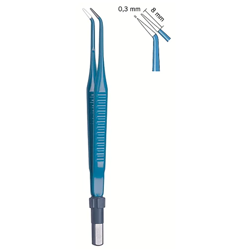 Bipolare Pinzette gewinkelt, spitz, Spitzenbreite 0,3 mm
