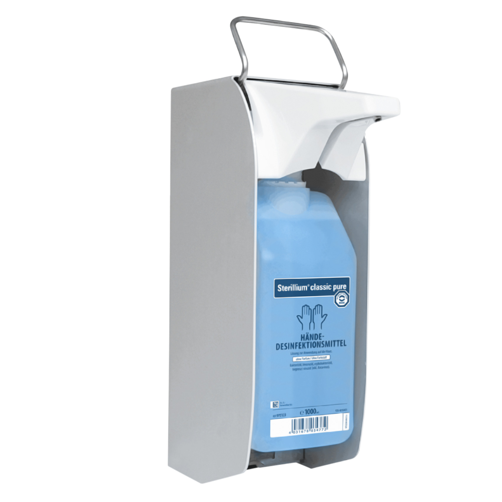 Präparatespender Typ KHL, Ausführung mit langem Bedienhebel und Kunststoffpumpe