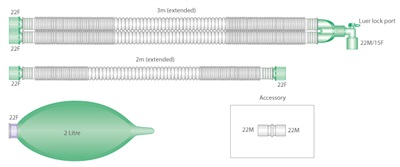 Compact™ Beatmungssysteme – ausziehbar 3.0m, komplett mit Beutel 2 Liter und Zusatzschlauch 1.5m