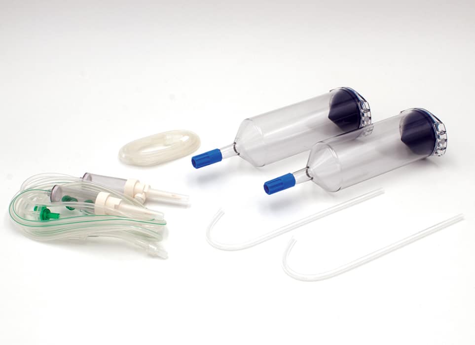 Set-Inhalt: 2 x ELS 200 ml Spritze, 2 x Schnellfüllstab, 1 x MRS 222 MR-Schlauchsystem, 1 x ES 224/150 Patientenschlauch.