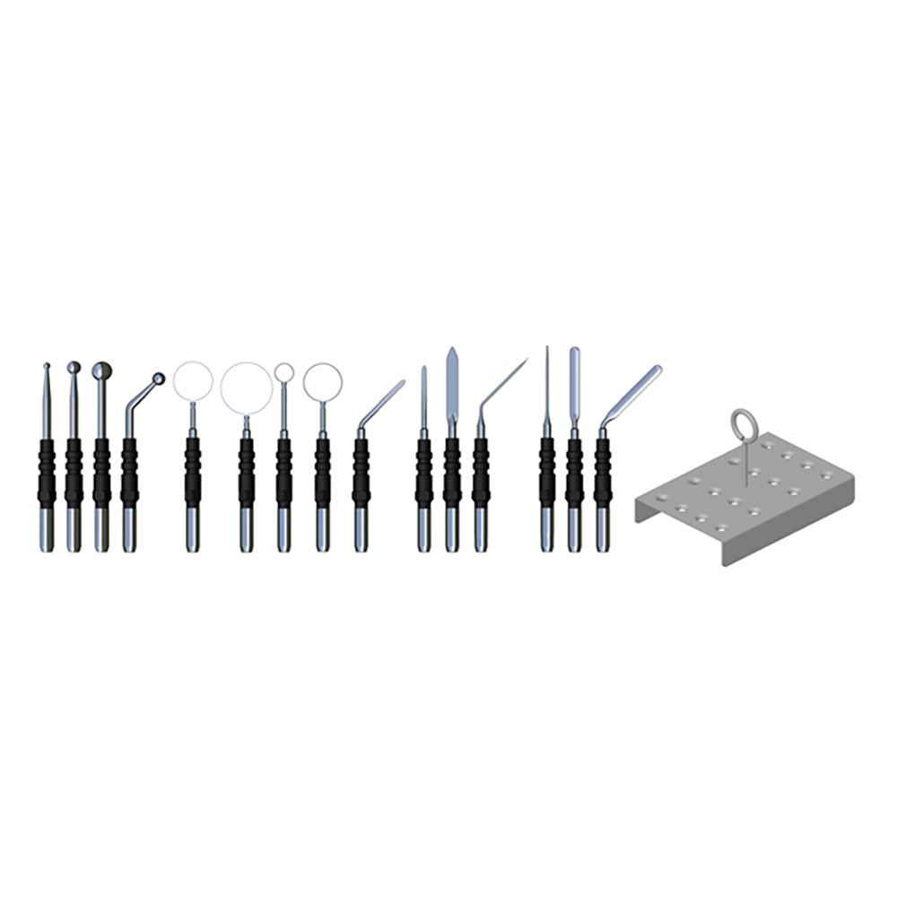 Großes Chirurgiebesteck, ø 4 mm; bestehend aus Sterilisiereinsatz 20191-002 und 15 monopolaren Elektroden