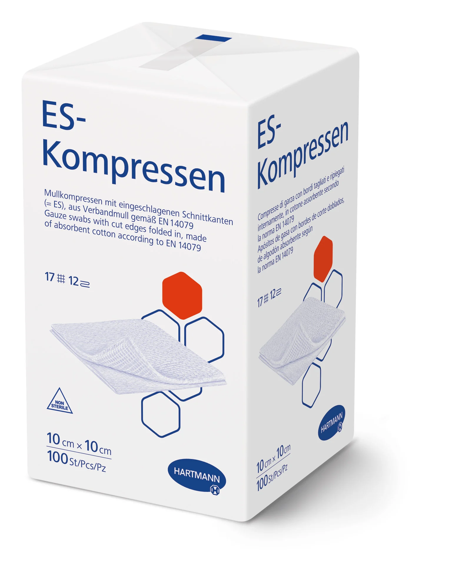Aus Verbandmull EN 14079, 17-fädig, mit eingeschlagenen Schnittkanten (= ES);