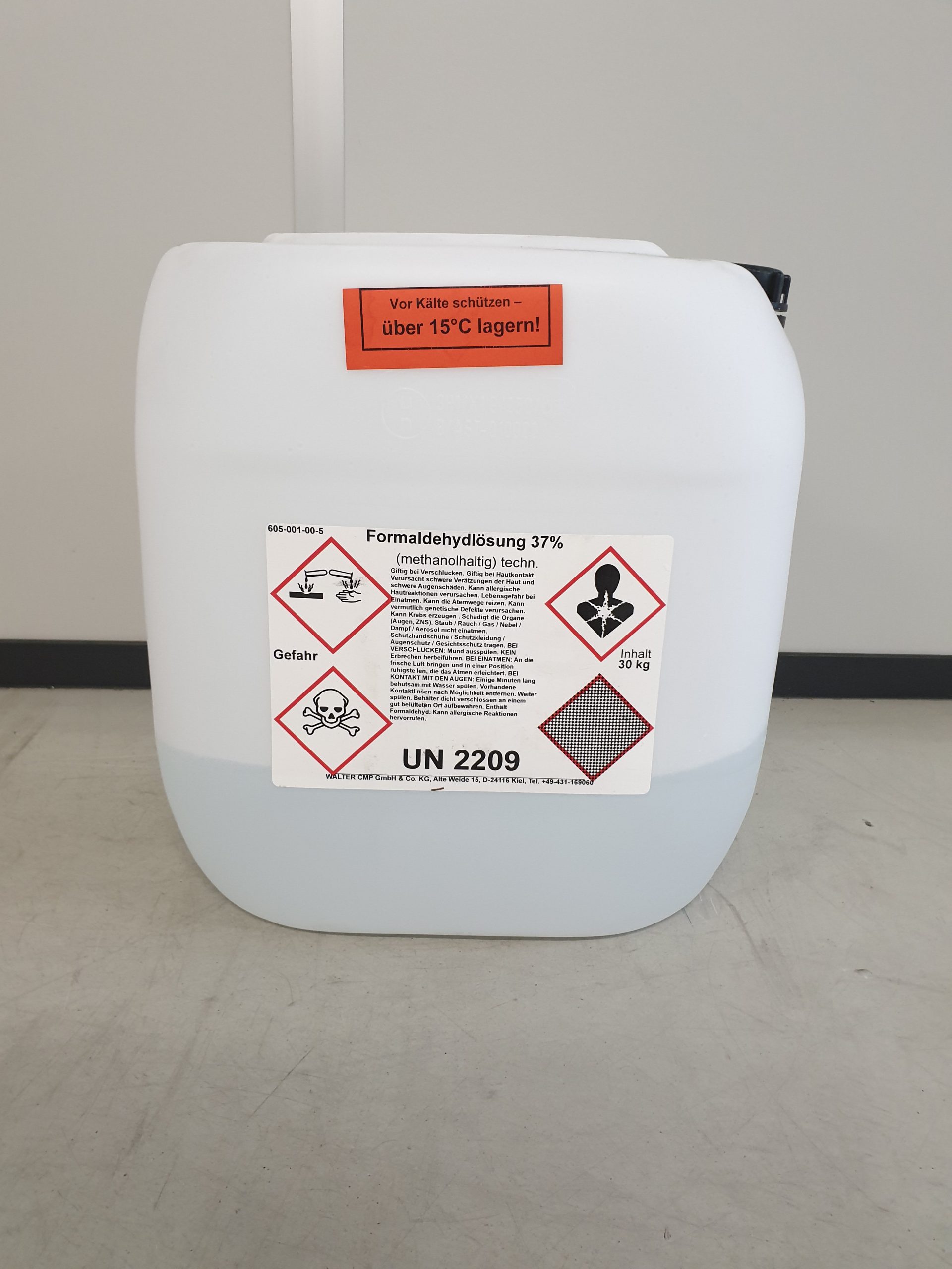 Formaldehydlösung 37% techn. methanolhaltig, lagern über 15°C