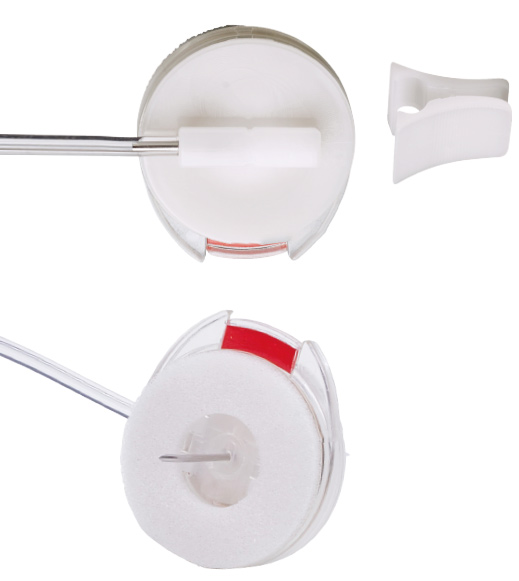 einzige Portnadel, die einhändig entfernt werden kann und sich selbst aus dem Port zieht