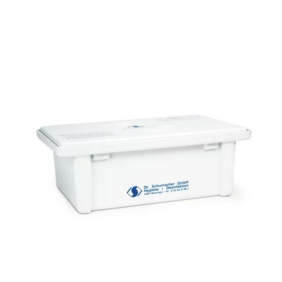 Instrumentenwannen sind notwendig für die Reinigung und Desinfektion bei der manuellen Aufbereitung und – sofern erforderlich – zur Vorbereitung der maschinellen Aufbereitung von Instrumenten sowie starren und flexiblen Endoskopen. Die Instrumentenwannen sind mit einem herausnehmbaren Siebeinsatz, einer Füllhöhenmarkierung sowie einem weißen dicht schließenden Deckel ausgestattet und in unterschiedlichen Größen verfügbar. Alle Instrumentenwannen können maschinell aufbereitet werden. Der Siebeinsatz ermöglicht eine einfache Entnahme der Instrumente aus der Reinigungs- oder Desinfektionslösung. Instrumentarien können im ersten Schritt direkt nach Entnahme aus der Instrumentenwanne im Siebeinsatz unter fließendem Wasser abgespült werden. Durch den dicht schließenden Deckel wird eine mögliche Raumluftbelastung durch flüchtige Inhaltsstoffe verhindert.