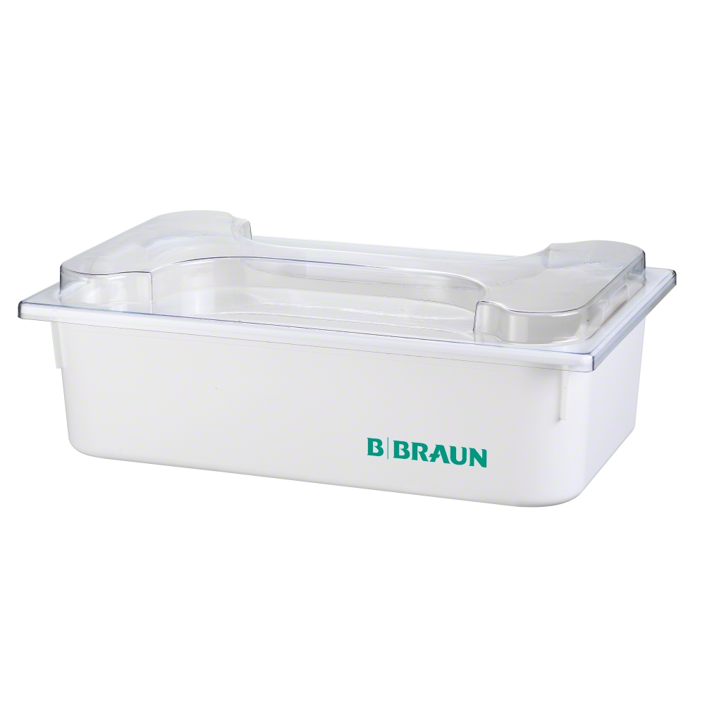 Behältnis zum Ansetzen von Instrumentendesinfektionsmittel für die Aufbereitung von Medizinprodukten. Je nach Bedarf Wannen für 2 Liter (Füllvolumen bis 4 Liter) und 10 Liter. Mit herausnehmbarem Siebeinsatz. Durchsichtiger Deckel. Keine Geruchsbelästigung durch dicht schließenden Deckel. Seitlich aufgedruckte Liter-Markierung. Material: Polypropylen.