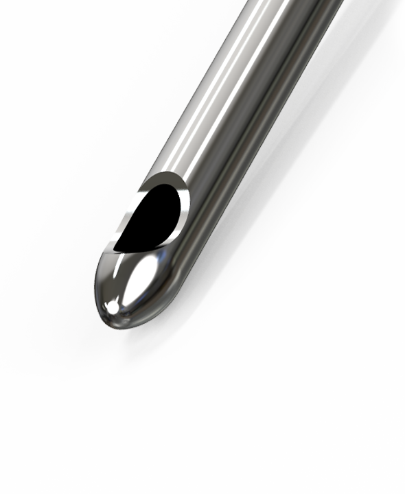Der Behandelnde kann das Ende der Kanülenspitze sehen und fühlen.