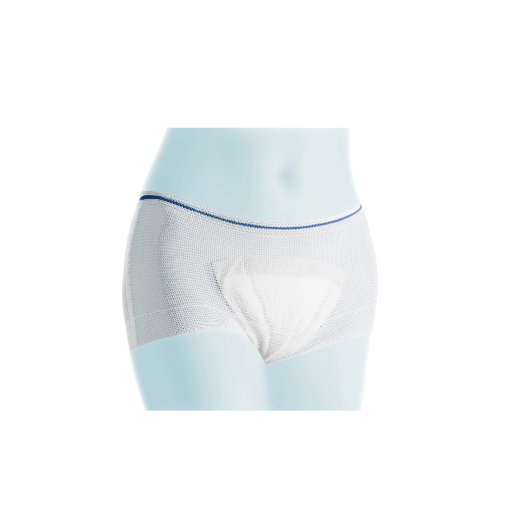 Hochwertiges, latexfreies Fixierhöschen mit weicher, wäscheähnlicher Textilstruktur. Dauerhafte Größenkennzeichnung durch Farbstreifen. Waschbar bei 60 Grad und trocknergeeignet im Schongang. Auch nach häufigem Waschen noch form- und passecht. Zur sicheren und tragefreundlichen Fixierung aller Inkontinenzvorlagen und Einlagen für mobile Personen.