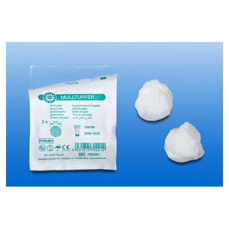 2 Mulltupfer sind in einer Sterilpackung enthalten.