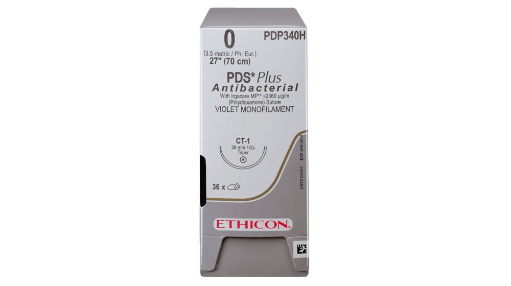 PDS II Plus ist ein langsam resorbierbares Nahtmaterial, das IRGACARE MP, die reinste Form von TRICLOSAN, enthält u