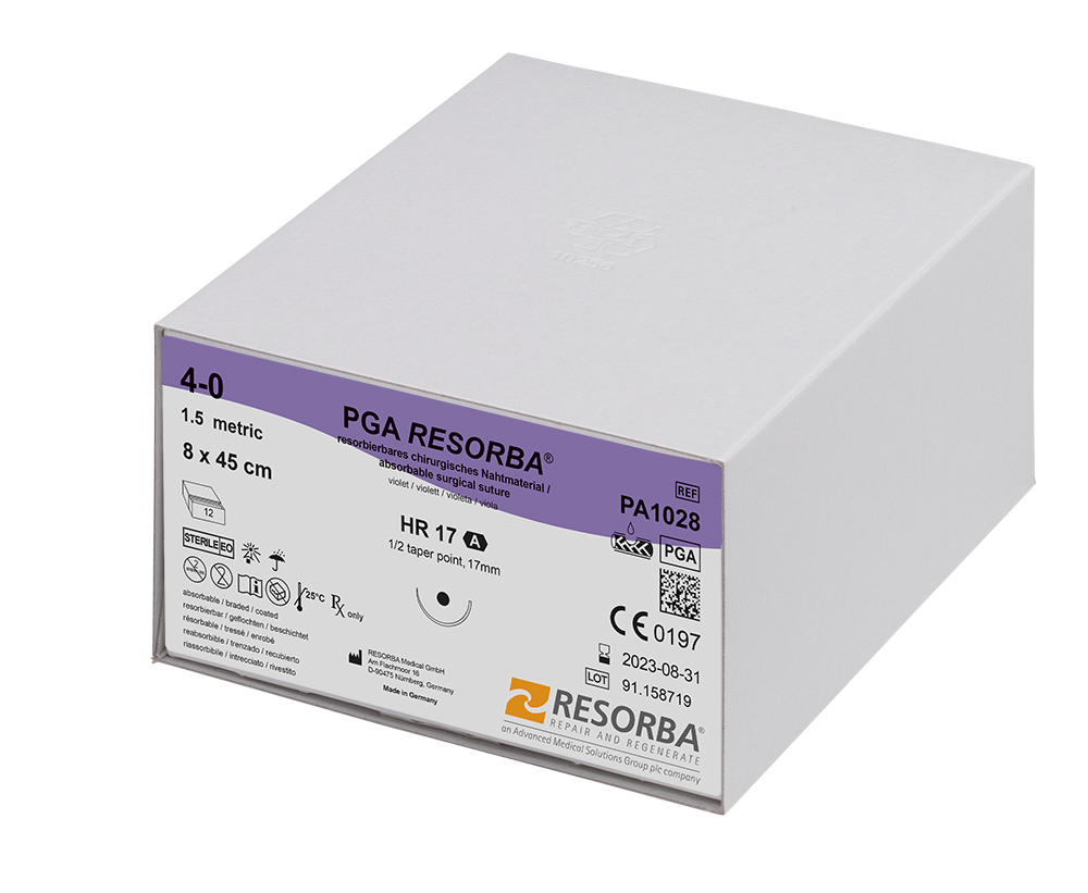 Violettes PGA RESORBA® ist mit einem physiologisch unbedenklichen Farbstoff gefärbt.