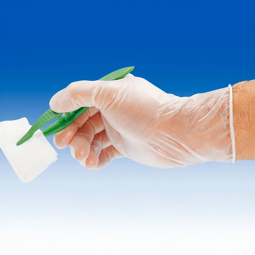 Produkte; wie Tupfer während einer Hautpflege oder -desinfektion zu halten