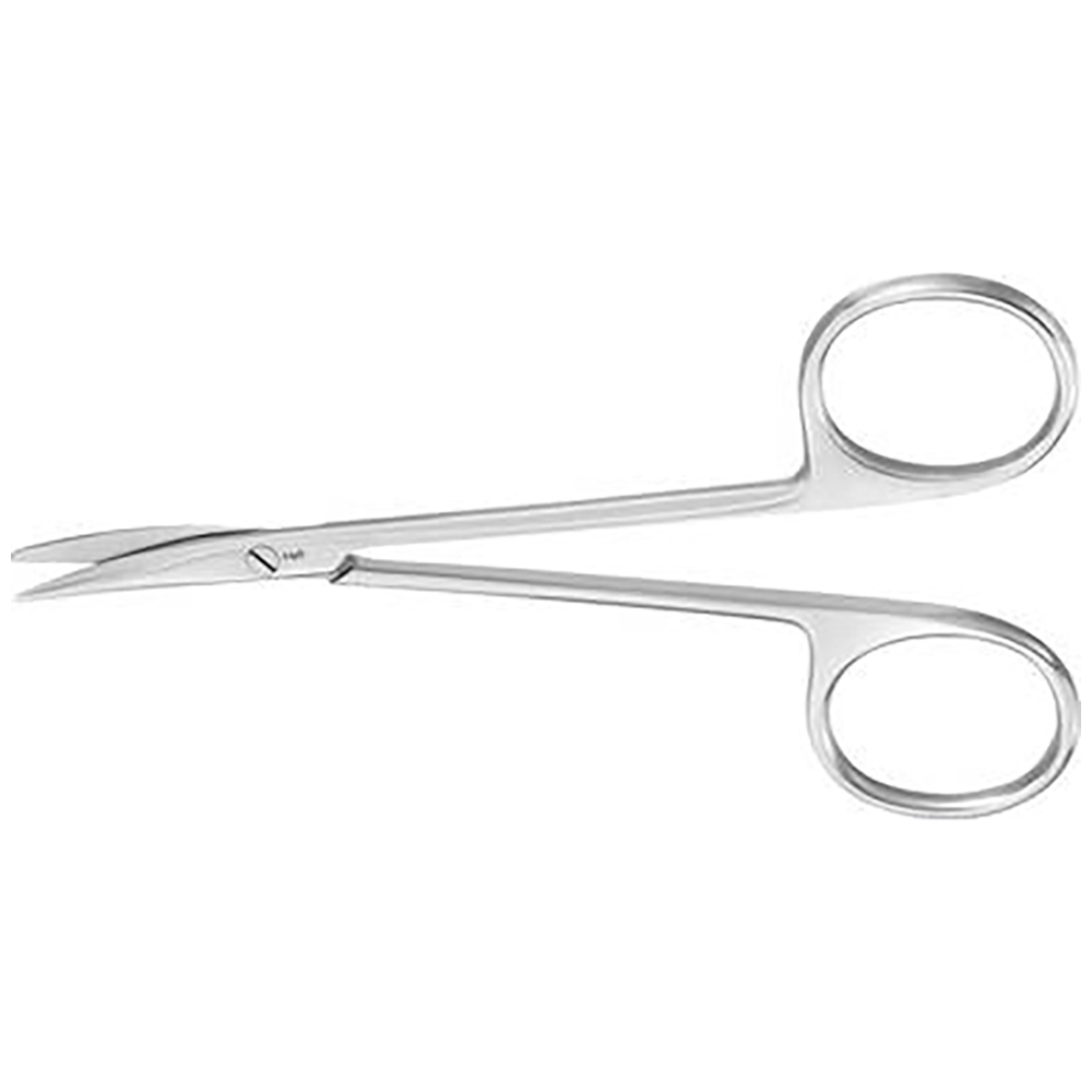 Präparierschere (Strabismusschere), gebogen, feines Modell, stumpf/stumpf, 115 mm