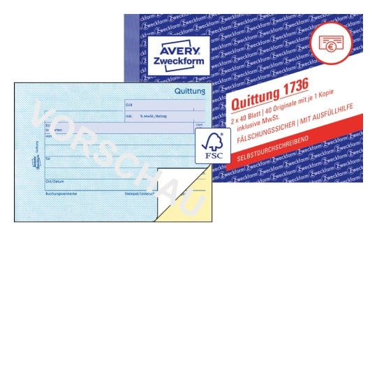 Quittungsblock Zweckform DIN A6 A6 quer, weiß, mit Blaupapier MwSt. separat ausgewiesen