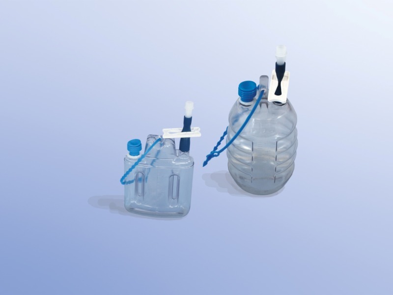 Einmal Redon-Flasche als OP-System mit Large-Lock-Konnektor und Stufenkonnektor CH 06-18,
