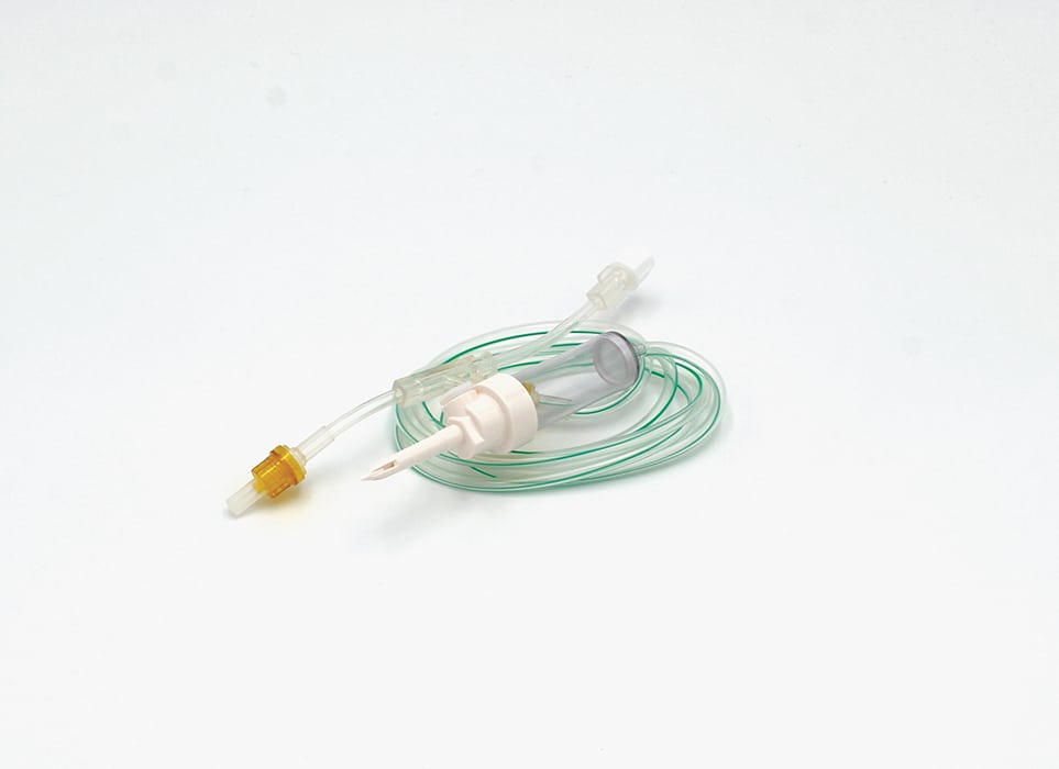 Druckseite (Länge: 13 cm, Füllvolumen: 0,4 ml) und Saugseite (Länge: 100 cm, Füllvolumen: 6,3 ml).