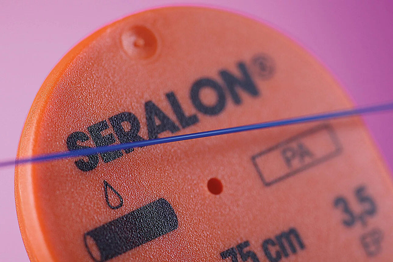SERALON® ist ein Polyamidfaden, der vergleichsweise zu herkömmlichem monofilem Nahtmaterial auffallend weich und geschmeidig ist.