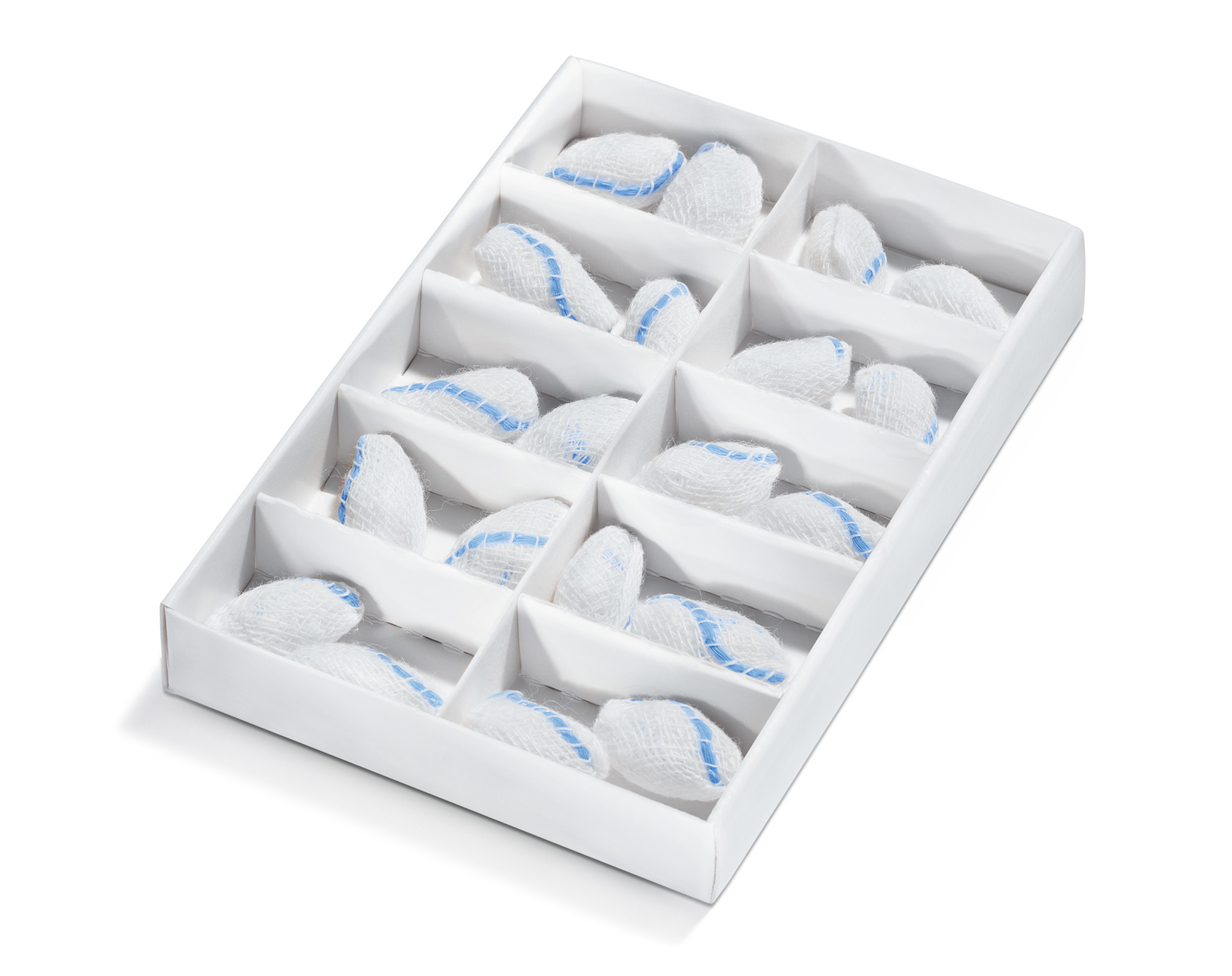 Telatrast® Röntgenkontrastfaden werden in einer Schiebeschachtel mit Rasterung geliefert.