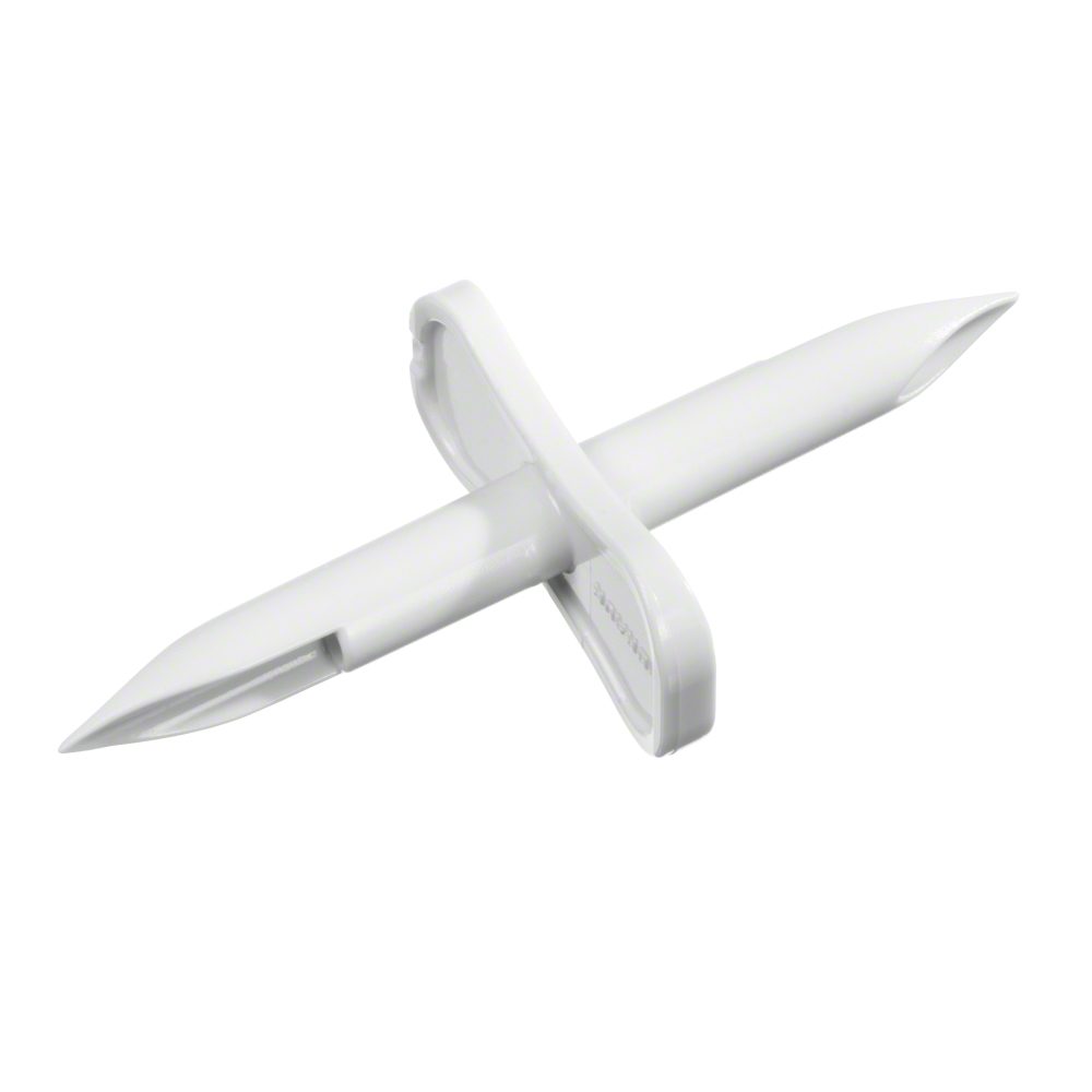 Schlanke, leicht silikonisierte Einstichdorne mit abgerundetem Schliff, um Abscherungen von Gummi-Partikeln zu vermeiden