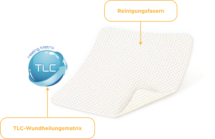 Die UrgoClean Kompresse besteht aus polyabsorbierenden Reinigungsfasern und ist mit einer TLC-Matrix beschichtet.